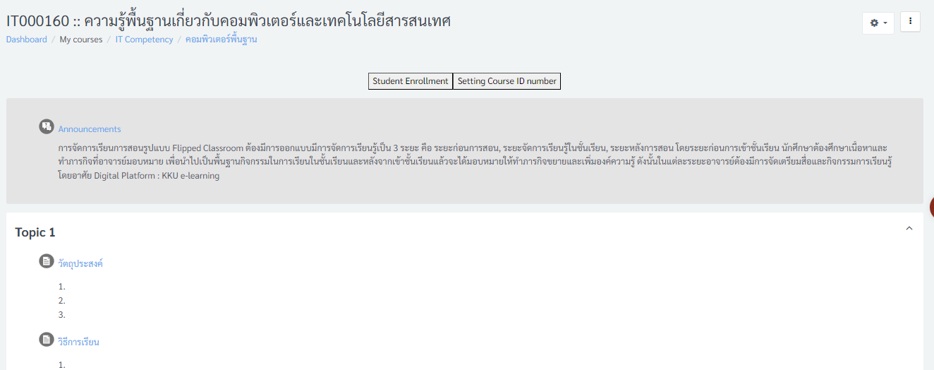 1. การแก้ไขเนื้อหารายวิชา ต้องเป็นเมนู Turn editing on ทุกครั้ง โดยการไปที่เมนูมุมขวาบนของหน้าจอ กดที่