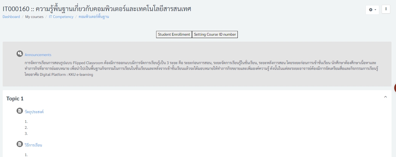 เมื่อเข้ามาที่หน้าแรกของคอร์สออนไลน์จะเป็น Blank Course Template
